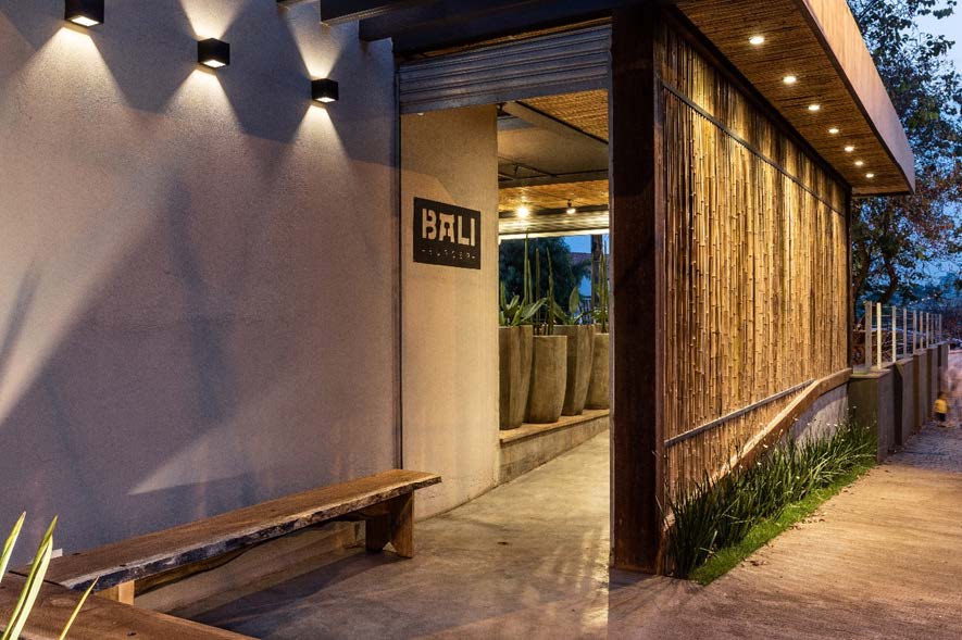optamos pelo uso de materiais como: bambú, aço corten, cimento queimado, tijolo cerâmico